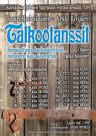 Tällaisissa tunnelmissa vietetään kesää Karkkilan Työväen Näyttämöllä. Kun juonenkäänteiden lomaan lisätään vielä aimo annos romanttissävyistä kansanmusiikkia jakolmikymmenpäisen talkooväen tanssinumeroita, on luvassa suomalaiseen kesään sopivaa teatteria parhaimmillaan.